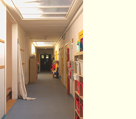 Das Gebäude ist nahezu in seinem originalen Zustand erhalten. Die Fronten, jedoch, waren mit einer Holzbekleidung sowie einer dahinter liegenden Wärmedämmung versehen worden.